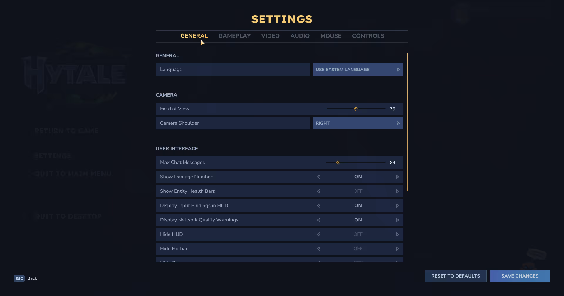 Sur votre jeu, accédez au menu Settings puis General